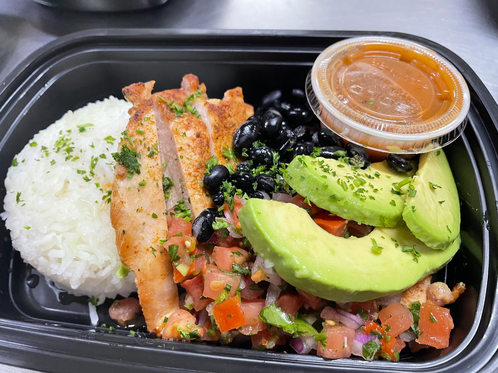 6oz Chicken Breast served with your choice of cauliflower rice or jasmine rice, 4 avocado slices, black beans, and house made pico de gallo.